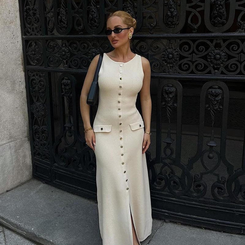 Rosamund - Ärmelloses Maxikleid mit Knöpfen