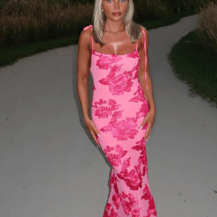 Daria – Elegantes Maxikleid mit Blumenmuster & glitzernden Pailletten