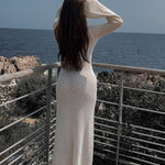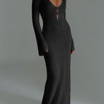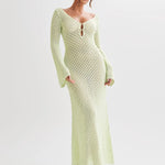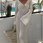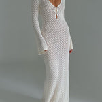 Dieses gehäkelte Maxikleid kombiniert sommerliche Leichtigkeit mit femininem Stil. Der tiefe V-Ausschnitt, weite Glockenärmel und die figurbetonte Passform sorgen für einen modernen Boho-Look, perfekt für Strand, Urlaub oder Gartenfeste.
