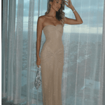 Ein elegantes Abendkleid, das mit funkelndem Stoff und femininer Silhouette begeistert.